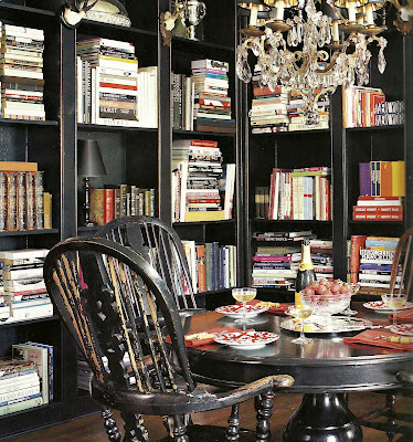 Love all the different display ideas for books - I'm dreaming of floor to ceiling shelves in our library so that I can take the books off the floor and a create color-coordinated scheme (just like the kitchen you show above!)